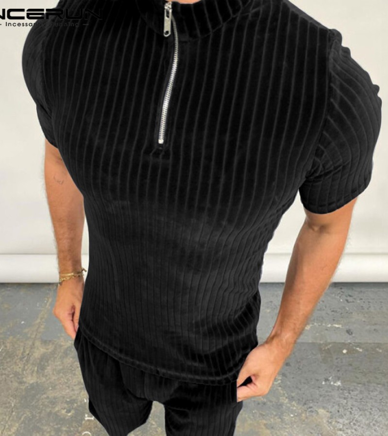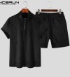 Beehoo INCERUN男式短袖拉链套装短裤适合睡衣内衣(西式)