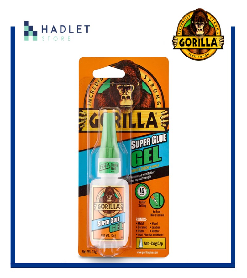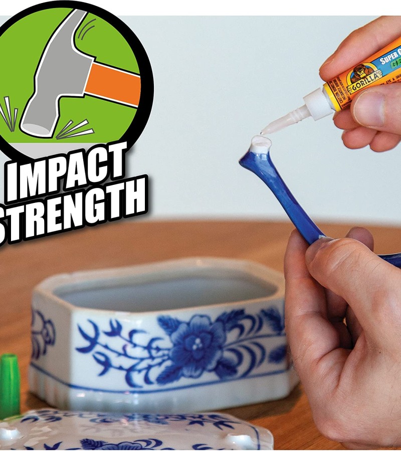 Gorilla Super Glue Gel is an easy-to-use, thicker and more controlled formula great for multiple surfaces and vertical applications. Developed for long-lasting repairs in an instant, the clear glue dries in 10–45 seconds. This super glue gel is specially formulated to absorb drops, impacts and shocks. Super glue, also referred to as cyanoacrylate glue, or CA glue, works on a variety of materials, including plastic, metal, fabric, stone, ceramic, paper, rubber and more.