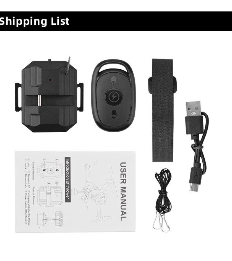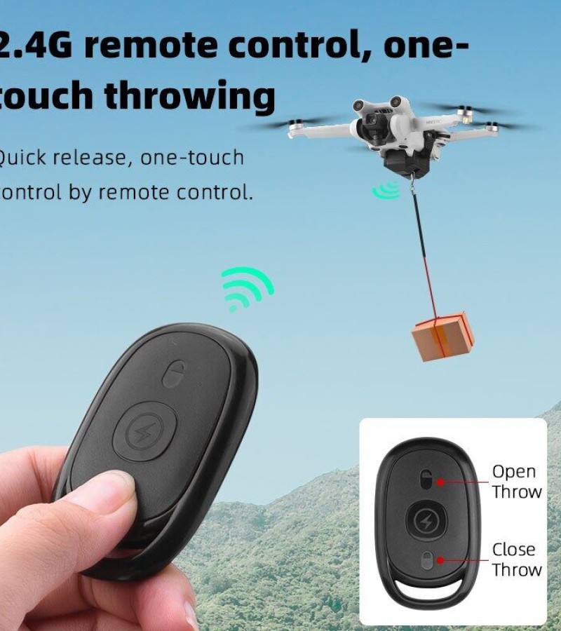 1. Drone thrower, which can be delivered remotely, is used for advertising, throwing bait, throwing gifts, delivering meals, giving wedding rings, etc;